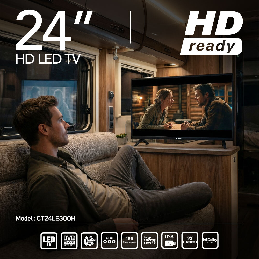 Conti CT24LE300H, 24 inç (61 Ekran) ideal boyutu ve LED görüntüleme teknolojisiyle yaşam alanlarınıza HD Ready kalitesini taşıyor. 1366 x 768 piksel çözünürlüğü sayesinde net ve canlı bir izleme deneyimi sunarken, 12 V / 220 V çalışabilme özelliği sayesinde hem evde hem de mobil ortamlarda kullanım esnekliği sağlar.