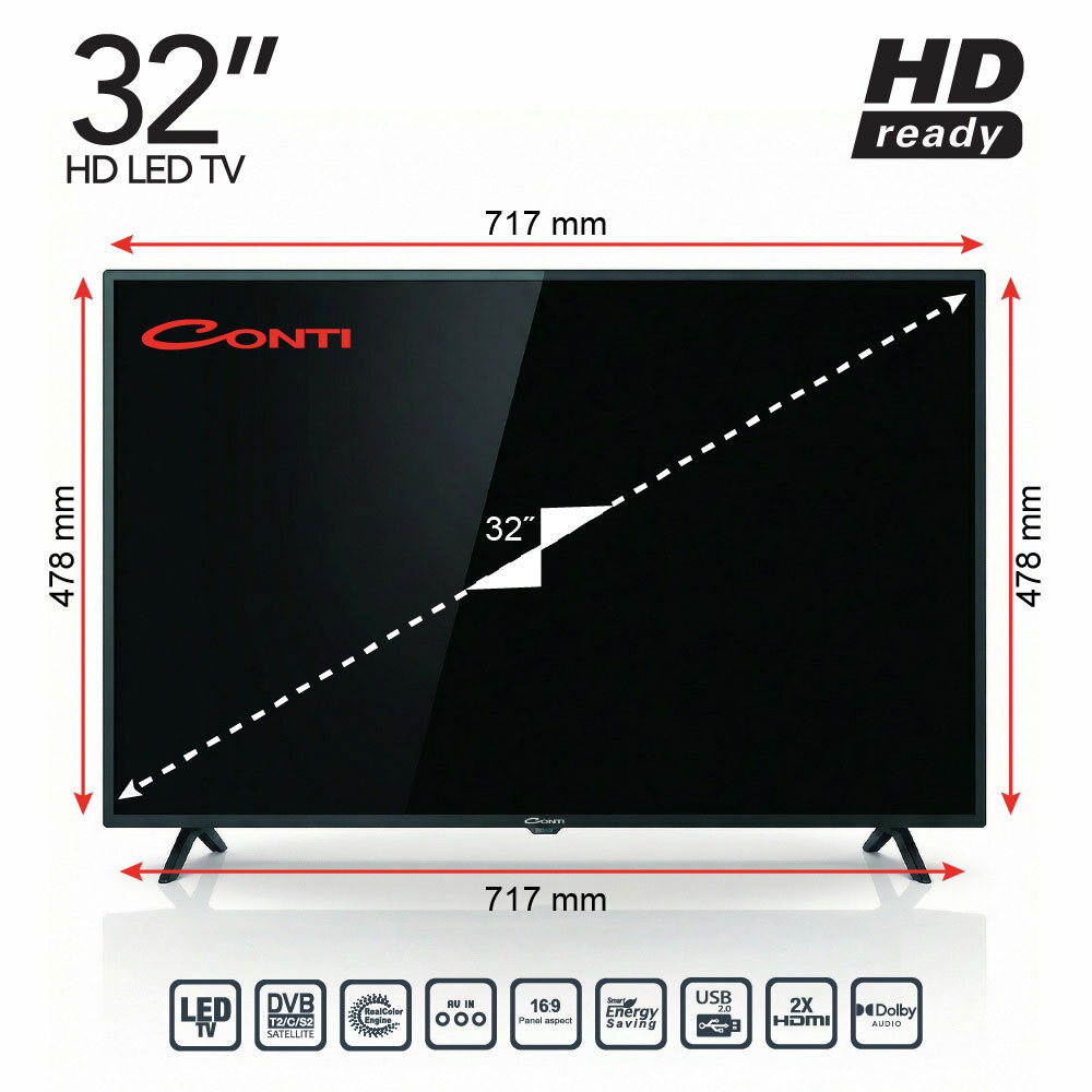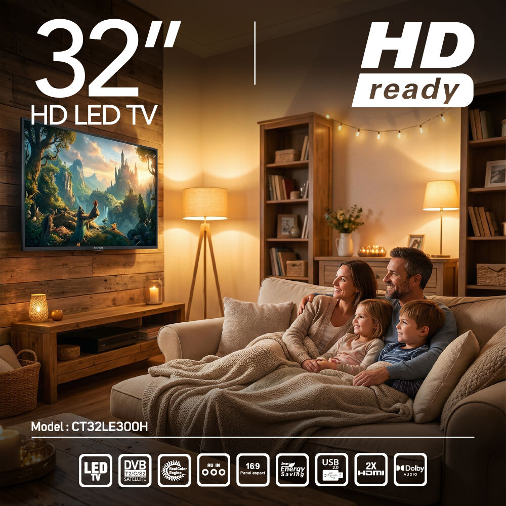 Conti CT32LE300H 32" HD Tv, karmaşık menülerle uğraşmak istemeyenler ve sadelik arayanlar için özel olarak tasarlanmış, şık ve kullanışlı bir çözümdür. Dahili uydu alıcısı sayesinde ekstra bir cihaza, kablo kalabalığına ve ikinci bir kumandaya ihtiyaç duymadan anında yayın keyfine başlayabilirsiniz. 32 inçlik (80 Ekran) ideal boyutuyla oturma odasından mutfağa, çocuk odasından ofise veya yazlıklarınıza kadar her alanda kusursuz uyum sağlar. Üstelik bilgisayar bağlantı desteği ile ihtiyacınız olduğunda dev bir monitör olarak da değerlendirebilirsiniz.
